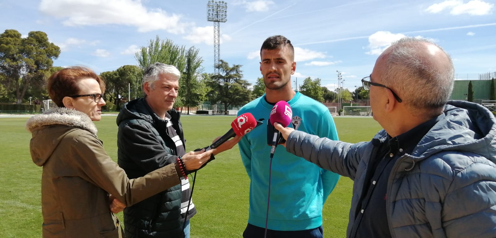 Carlos Mena le ponía voz al vestuario del CD Manchego tras el entrenamiento de este viernes, penúltimo antes del partido…